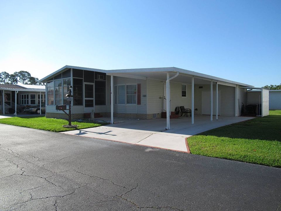 This 2 bed/2 bath home on prestigious Eagle Drive is 1040 sq.ft. of possibilities. This semi-furnished cottage has a spacious kitchen area with a working/eating peninsula. It has a generous living area with lovely new sofa and loveseat. There is a dining area between the kitchen and living room and a wide hallway to the bedrooms. Guest Bedroom is furnished. The master bedroom is ready for your own new furniture to make it beautiful. There is a large shed (10x12) a long driveway, and a add-on cart shed. There is nice Florida room with A/C where you can sit in the evening and wave to your friends as they walk by. This home comes with 1 year of free golf to the lucky buyers. This one is a steal! Come make an offer.