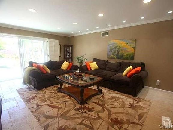 Welcome to this 4 bed, 3 bath, & 2,421 sq ft home located in the heart of Simi Valley. This home is the entertainer's dream, & will not last long! Step in to the open & bright living room that leads you to the dining room both with travertine flooring & views of the expansive & lush backyard. The kitchen has just been remodeled & is the perfect space for the family cook, with granite counter tops, dark cabinets, & a spacious sitting area. On the lower level you will find a large den with a cozy fireplace, along with a guest bedroom & full bathroom. On the upper level, the master bedroom sits with amazing views of the backyard pool & greenery, & an attached dressing area & large bathroom. The guest bedrooms upstairs are large in size & share a remodeled bathroom. The spacious backyard is full of room to play in, with a large pool, lots of grassy areas, & double RV parking. Other amenities of this home include new carpet, travertine flooring, attached 2 car garage, & so much more!