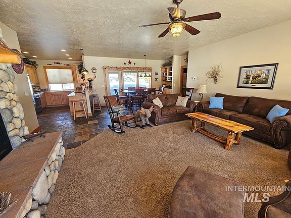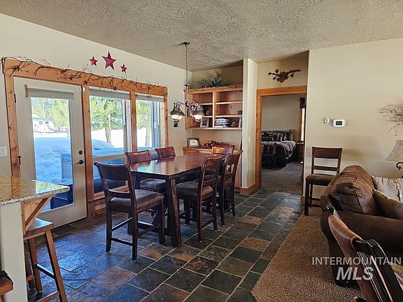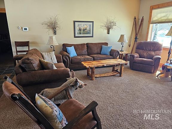 This well maintained, 1690 sq ft, 3 bd/2bth charmer on a corner lot in Lick Creek Meadows is located just blocks from the shores of Payette Lake, Ponderosa State Park & downtown McCall. Sold turnkey & move in ready, where the mature landscaping is already in place & you can enjoy those warm summer evenings with mountain views from the back deck, in the hot tub or making S'mores in the firepit on the pavered patio. This cozy cabin comes furnished so it's ready to be enjoyed right away. There's an oversized 2 car garage that opens into a mud/laundry room. The split floor plan has two guest rooms & a full size bath on one end & the primary bedroom on the other. The main living space is open & inviting w/loads of windows to let in the views & natural lighting showing off the slate tile floors & river rock fireplace. The kitchen has granite countertops, custom wood cabinets & a pantry. The primary suite opens onto the back deck by the hot tub & the bathroom has radiant heated floors and a walk in closet.