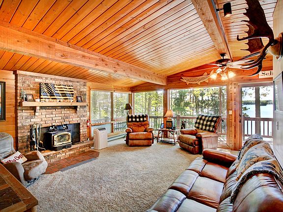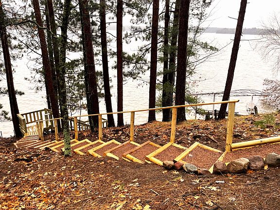 EAGLE RIVER CHAIN, CATFISH LAKE! This Northwoods dream is three bedrooms, two full baths, with a majestic view of Catfish Lake and 110 feet of SAND frontage! Full walk out basement mostly finished, lots of wood paneling for that up north feel, and a H U G E garage with extra storage above for your vehicles and all those toys we all enjoy. This home does have an incline to the water, but the owner has installed brand new steps and landings leading to our 28 Lake Chain. At this price, this home MUST be considered!