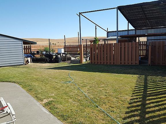 Bring your horses and other critters out to the country. 1999 double wide 2 bedroom 2 bath with large office/den or extra bedroom. Set up on slab with block foundation wall. Spacious kitchen and dining. Picture windows and skylights, give lots of natural lights throughout. Beautiful view of Mt. Adams and goat rocks from living area with a three mountain view from the property. All new vinyl high efficiency windows and a new heat pump! Newer steel roof. Fenced back yard. Great garden spot. 3 sided pole barn/car port with a loft for hay or ? 10' x 12' pump house with plenty of storage inside for lawn and garden equip.. Property is currently zoned agriculture and is in the ag. tax program saving you $. Fenced on four sides. Interior pictures coming soon. Priced to sell!