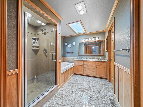 Gracious, well-cared for East Medford home just around the corner from St. Mary's school, Rogue Regional Medical Center, shopping, dining, and more! 4 bed, 3 bath with over 2800 sq. ft. including multiple large living and dining areas, beautiful hardwood floors, vaulted wood accented ceilings, and skylights throughout. Gourmet kitchen with granite countertops, eating bar, abundant cabinetry, center island, and double ovens. Light and bright primary with a spacious ensuite featuring an oversized walk-in shower, dual sink vanity, soaking tub, and private water closet. Dedicated laundry room with built-in cabinetry, workspace, and utility sink. 3-car garage, fully fenced with mature easy-care landscaping, expansive deck, and a 5500 gallon above ground pool. Brand new 50-year dimensional composition roof installed in 2021 with a transferrable warranty! Don't miss this fantastic property!