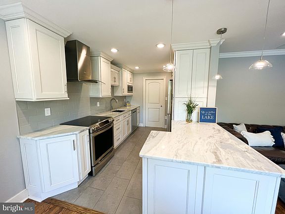 Discover this stunning 3-bedroom, 2.5-bathroom lakefront gem in Haddon Township, overlooking the breathtaking Newton Lake Park. The residence masterfully blends historic charm with modern elegance for an unparalleled living experience. The sun-drenched living room features hardwood floors, natural light, and elegant crown molding. The dining room flows into the state-of-the-art chef's kitchen, showcasing blue marble countertops, stainless steel appliances, and ample pantry cabinetry. The primary suite boasts a spacious closet with a custom storage system and an en-suite, spa-inspired bathroom with marble finishes. Another bedroom suite offers an en-suite bathroom with onyx countertops, while the third bedroom provides a perfect space for relaxation. A dedicated mudroom, laundry area, and half bathroom offer convenience. Step outside to the concrete patio and enjoy captivating lakefront park views. This remarkable home is just a 5-minute walk to South Jersey's finest dining and a 15-minute drive to Center City Philadelphia. Additional features include a new driveway, central air conditioning, gas heat, tankless hot water heater, refinished hardwood flooring, prewiring and automatic transfer switch for a backup generator and a level 2 electric car charger. Embrace the luxury and comfort of this enchanting lakefront retreat, where every detail has been thoughtfully considered for an exceptional living experience.