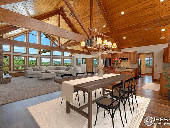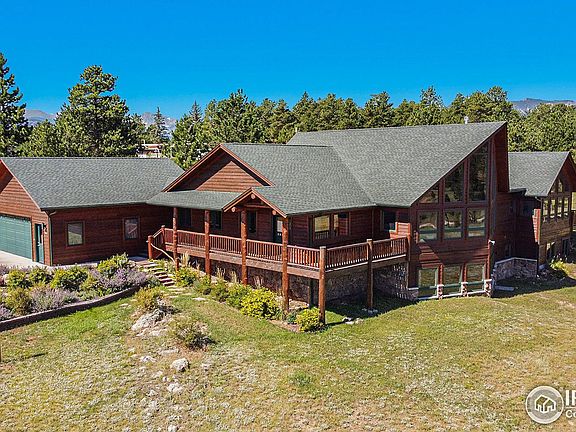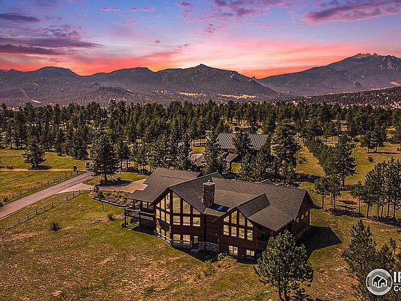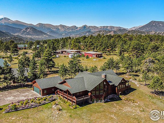 With VIEWS of the Lumpy Ridge Mountains, framed Peaks, and a gorgeous corner lot, this incredible location in Rocky Mountains of Estes Park, Colorado, has it all. A MAIN FLOOR GREAT ROOM appointed with wood beams, tung and groove cathedral ceilings, large vista windows, a floor-to-ceiling stone gas fireplace and Pella Windows and Doors throughout. THE KITCHEN features a butler's pantry with sink, an extra refrigerator, full freezer, a sizable walk-in pantry and 2018 saw the installation of new kitchen appliances. ON THE MAIN FLOOR, there are two primary bedrooms, a sun-room, an office/den with a gas stove, well-equipped laundry room, mechanical room, additional bathroom, and a sizable coat closet. TWO STAIR CASES lead to the LOWER LEVEL where there is a bedroom, space to furnish a suite and full bathroom. There is also a large FAMILY ROOM with views, gas stove and a Brunswick Pool Table. Additionally, the lower level features a sizable craft room, deep utility sink and a ton of storage space with movable shelving. OUTSIDE is a potting/hobby shed with an air compressor and retractable power and air lines. THE INCREDIBLE 40' x 50' RV GARAGE/WORKSHOP, has everything, including concrete floors 5" thick and a half-bath with a tank-less hot water heater. There are two 14 foot electric doors which open to breathtaking vistas. There is more, a Quincy air compressor, Comfort Built Pellet Heater with a vacuum, 30 ton press, 2 water hydrants, 5 retractable air hoses, 3 retractable power lines, and 50 amp RV outlets! ALSO INCLUDED is a Troy Built 30" Snow Blower and a Kubota Zero Turn 54" Lawnmower! See documents for more information.