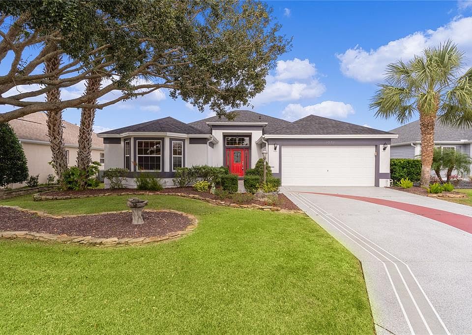 INTERESTED IN......A home that has a NEW HVAC, ROOF REPLACED IN OCTOBER 2021, SOLAR 2021 WHICH IS PAID IN FULL, TESLA EV CHARGER in the GARAGE? This Lantana model offers a lot, and this is just the beginning. This three-bedroom, two bath home has volume ceilings with beautiful crown molding, wood floors in the living and dining area and offers an open floor plan. The fully equipped kitchen has stone counters, new range, new carpet, microwave and a new dishwasher on the way. The kitchen opens to the family room and breakfast area for easy entertaining and enjoyment. The inside utility room off the kitchen provides a washer, dryer and ample space for storage. Your guests will love the guest bedroom at the front of the home with the bay window and abundance of space. The two guest bedrooms and guest bath are conveniently located near the front of the home. The master suite at the back of the home has a large walk-in closet, his and her sinks and volume ceilings. You will spend hours enjoying the huge, enclosed lanai with ample room for an additional dining table and furniture. There is also an open patio off the lanai for your grill or to sit and enjoy the sun. The exterior of the home was painted in January 2023 and the irrigation system was inspected and all the heads were replaced in August 2023. The home is located on a street with a cul-de-sac so little traffic. LOW BOND BALANCE. Located only 2.5 miles from Lake Sumter Landing and close to 466A, you will enjoy restaurants, shopping, banks, golf and the recreation centers. Enjoy the Villages lifestyle and all it has to offer. Call and schedule your private showing today!