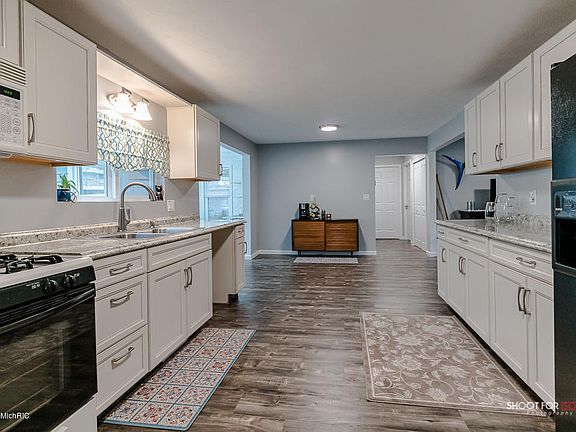 What nice improvements have been done to this home! You will be delighted with the new kitchen cabinets, countertops and flooring. Plenty of room to seat a large dinner party! 2 bedrooms are on the main floor and 2 more bedrooms are on the upper level. Large mudroom offers great space coming in from the outside and would be perfect spot to relocate existing main floor laundry. The lot is generously sized and offers lots of privacy and beautiful wooded views. Large 2 stall garage and party gazebo compliment the back yard. Great setting on a low traffic paved road and located in the Oakridge School District. This home is in move in condition and should accommodate any buyer financing program.