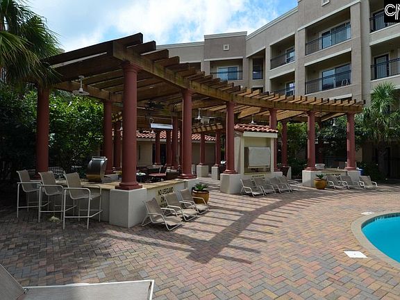 Unit overlooks Pool area! Priced below market value. Affordable low maintenance living convenient to USC campus, central business district and downtown shopping/dining. Top notch amenities to include: secure/gated entry and parking, pool, hot tub, gym, club house, onsite dog walk, tail gate yard, grills and so much more! This unit offers an open floor plan with GRANITE ISLAND kitchen, split floor plan and a spacious balcony. Full appliance package: Fridge+ Washer+ Dryer! Exterior of building under renovation; completion estimated 2021- get in now before prices rise. HOA includes: cable+water+sewer+ trash and building maintenance. This is a must see!
