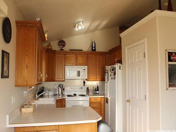 Great Neighborhood! 3 bedrooms/2 bathrooms with room to grow in the basement. Separate shower/ jetted tub in the master bath, vaulted ceilings, bay window with open living on the main floor. Awesome rock patio, sprinkler system, great trees with views of mountains and valley. Man-sized garage with an extra storage/ work room at the end. Large RV parking next to the garage.