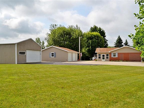 Location, location, location! Well-maintained ranch home on 5.9 mature acres convenient to town with many great features inside and out! Home has four bedrooms, three baths, updated oak kitchen, full finished basement with fireplace, plus a sun room with propane heater, deck, detached 2.5-car garage with 220 electric hook-up and concrete floor, large 24x40' outbuilding with 220 electric hook-up and concrete floor with drain, garden area, three apple trees, storage shed and ample parking! This attractive property could be yours - call today!