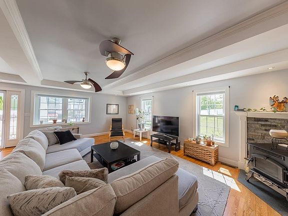 - Liv Dscrp: Flooring - Hardwood, Open Floor Plan, Wood / Coal / Pellet Stove, Ceiling - Coffered, Lighting - Overhead