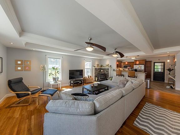 It's all in the details! This 4 bedroom 2 bath home is full of charm and character. Not only has it been renovated but it's been maintained with care inside and out. The front porch has beautiful stone detail and tapered pillars leading you into the oversized living area which boasts coffered ceilings, recessed lighting and a pellet stove. The living area looks into a completely upgraded kitchen with granite counter tops, breakfast bar and stainless appliances including double wall oven, dishwasher, gas countertop range, refrigerator. Mud room/pantry offers plenty of room to tuck things out of sight. The dining room is located off of the kitchen and from there you step out to the large deck which is partially enclosed for privacy.The master bedroom has a walk in closet. All bedrooms are quite spacious. The yard is big and open with plenty of room to play or entertain.The laundry room is conveniently located on the first level. Includes solar panels that belong to the house!