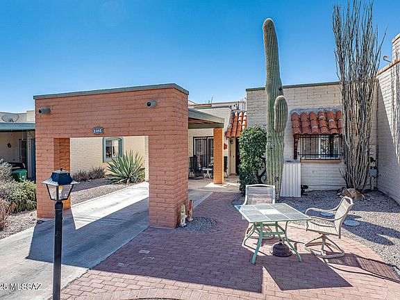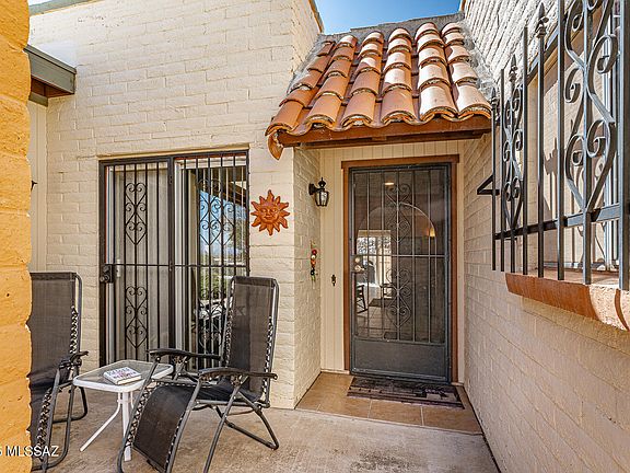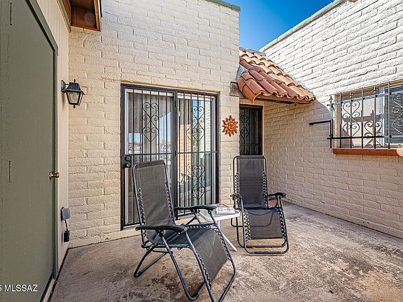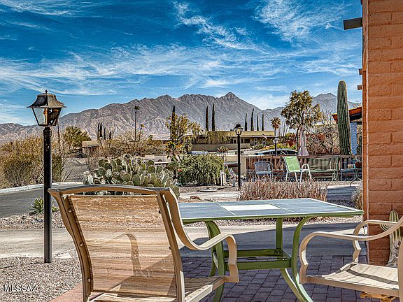 This very pretty townhouse sits in a private and unique location with no neighbors behind it and with a great view of the mountains from the special front patio. Look up over the arroyo and there they are! Nothing in your view, just the mountains. Great neighborhood gathering place too! This home has everything you need in a compact space including new large size tile to finish it off. The AZ room has many uses but right now is a great music room. Can't strum? Then maybe a sewing room, an exercise room, office, whatever you are needing. Priced very well AND includes all the furniture and furnishings excepting art on living room walls. It is the deal you shouldn't pass up! Everything you could possibly want for a southwest getaway!