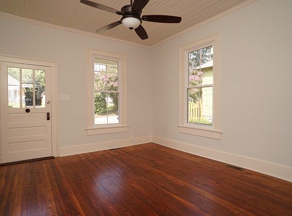 This 3 Bed,2 Bath,turn-of-the-century home has been lovingly restored & updated from the ground up.From the original 10'+ tall beadboard ceilings & newly refinished heart-pine floors,to the green-smoked fireplace tile & claw-foot tub,this is the in-town gem you've been waiting for.The open kitchen & dining area w/white cabinets on black granite,textured tile in the kitchen & laundry,& stainless,counter-depth appliances are neat & minimalist,but there's a great balance struck w/the warmth of color choice,natural light from the 6' tall windows,& shine from the wood floors.The combination of these creates lively & inviting space.