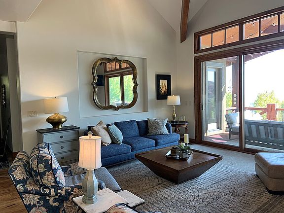 "Nestled in the benches of the Wasatch Back in Midway, close to world class skiing, golf courses, and endless recreation, is our beautiful home located in the Turnberry Woods community. This home has stunning views of Midway, Heber Valley and beyond and then quietly encompasses a backyard of peace as it rests on the fairways of the Homestead Golf Course. Newly remodeled, as you walk in the front door you are welcomed with the open living concept where entertaining and gatherings are common and the views are instantly available through the living area with floor to ceiling glass windows and sliding glass door. The kitchen has white shaker cabinets with glass inserts, a knotty-alder hood, black tumbled quartz countertops and fabulous appliances including a stainless steel Thermador refrigerator, Viking stainless steel stove, Bosch dishwasher and everyone’s favorite . . . a free standing pellet ice maker. This lovely home has six bedrooms, three of which are ensuite master bedrooms with walk-in closets, one located on each of the floors of this 3-story home. There is also a bunk room that sleeps 4 and a large walk-out lower-floor living room which accesses a hot-tub on the lower patio. A remodeling project in 2018 replaced all the carpets, interior paint, tile flooring in the master bath, laundry and powder rooms, and a total re-do of the kitchen and master bathroom. The upper bedrooms were also equipped with ceiling fans. The flooring in the kitchen and dining area is hardwood, while the remainder of the home has high quality carpet and designer tile. The lighting fixtures are all new since 2018 and are a mix of brass, chrome and black throughout the home."