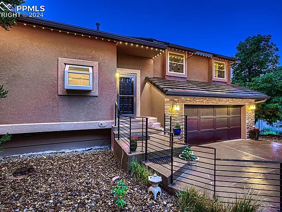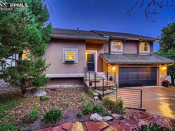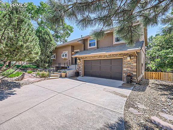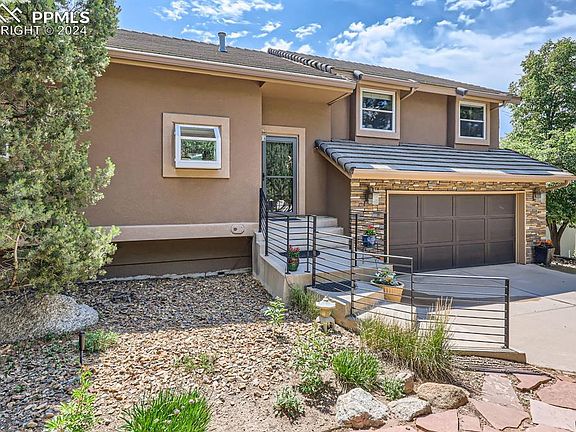 Welcome home to this one-of-a-kind, show-stopper located in the quiet neighborhood of Comstock Village in Rockrimmon. Custom interior renovations and a private, mature backyard are absolutely unbeatable. City and mountain views abound from both inside the home and from an extra large rear deck! Main level features a Great Room with fireplace, built-in entertainment center, solar-powered electric blinds, and two walk-out sliders to the expansive deck. The recently remodeled kitchen looks like a million-dollar home, offering an oversized Sub-Zero fridge, leathered granite countertops, Kitchen Aid dishwasher, and Decor range. Primary Suite is highlighted by Pikes Peak views, an attached bath, walk-in closet, and its own walk-out to the deck. Dining Room, 1/2 bath, and laundry space complete the main level. Upper level features three charming bedrooms, a full hall bath, and a stylish loft overlooking the main level. Finished lower level has a 5th optional bedroom, attached bath, double closet, and mechanical room. Home amenities include central air, Cali LVP flooring throughout the main level, barn door into laundry room, dog bowl filler in kitchen, custom wrought-iron railings, exterior Lightfinity holiday LED house lighting, and maintenance-free stucco siding. Two-car attached garage with workbench and shelves included. The fully enclosed backyard is a beautiful park setting with huge mature trees, amazing perennials, raised garden bed, a water feature, and walkways that back to an open space. Also includes a dog run with turf. Award-winning Academy School District 20. Comstock Village community offers quick access to Ute Valley Park, walking/biking trails, coveted common areas, and concert events. Within walking distance to shopping and restaurants. Easy access to I-25. Don't let this gorgeous, Westside home get away!