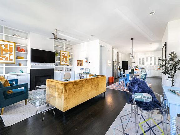 Step into this vibrant and unique home, where soaring ceilings and cheeky furnishings create an atmosphere of fun and relaxation. With a spacious open-concept main level, this funky pad is perfect for music lovers, featuring a record player and nods to the Beatles and Talking Heads. Upstairs, you'll find three bedrooms and two full baths, along with extra perks like a garage, powder room, wine fridge, and fenced yard, making it an ideal retreat for those who live life in full color. This home is just a five-minute walk to the Atlanta BeltLine, a popular paved path for joggers, cyclists, and strollers. Explore the vibrant street art and head to the famous Krog St. Tunnel, where you'll find a variety of restaurants, bars, and shops stretching to Ponce City Market and Piedmont Park. The nearby Atlanta Dairies and Madison Yards developments offer amenities like a movie theater, music venue, and grocery store. Reynoldstown is truly where it's at! This home offers a 1-car garage and fenced front and side yards. Dogs are welcome with a fee of $250 for the first dog and $100 for the second. An extra $5 per night fee applies for charging electric vehicles using the home's electricity. A hot tub is available for an additional fee of $200+ to ready it for use. Historic Reynoldstown is a friendly, walkable neighborhood featuring a portion of Atlanta's famous BeltLine hike and bike trail. Architectural styles range from 1920s shotgun houses and bungalows to ultramodern abodes and lofts, with beloved independent coffee shops and eateries dotting the area. Two new developments on the south side, the Atlanta Dairies and Madison Yards, provide handy amenities like a grocery store, movie theater, music venue, breweries, and restaurants. Parties are strictly prohibited, with violators facing eviction, a $1000 fine, and additional fees. Quiet hours are between 9 PM and 8 AM, with non-compliance resulting in a fine of one night's rent. Indoor smoking is fined $1500 plus ozone remediation costs. Late check-out incurs fees and potential eviction. Unauthorized guests are not allowed, and only registered guests may stay. The home features Ring video doorbell cameras and custom-coded keyless entries for security. The home is equipped with ultra-fast WiFi and a smart TV, ensuring you stay connected and entertained. A laptop computer is not included.