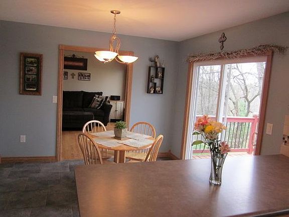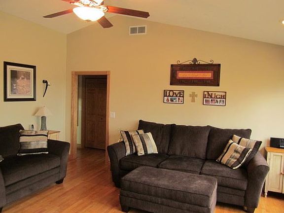 Quality built ranch with awesome hilltop views. Hard surface floors including low maintenance hardwood and tile. Convenience of mud room and main floor laundry as you enter from the garage. Large master suite with large closet and double shower as well as deep jet tub. In the lower level you will find a high 9' ceiling large family room with walkout to patio. Bedrooms #4 & #5 with full bath is the perfect combo. Outside is entertainment central with patio, deck, play area and a basketball court.