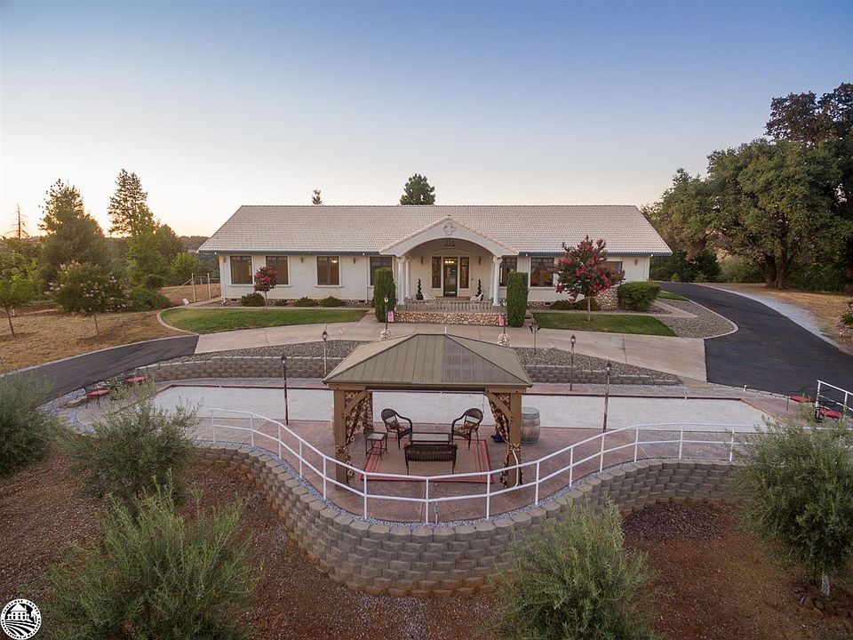 Mt. Brow Estate - Everything you dream of, right here in the Sierra Foothills. 81 acres of privacy, luxury and history, nestled in the small town of Sonora, California. Just two hours from the San Francisco Bay Area, and in the heart of the Gold Country - this is an ideal getaway spot for people connected to Bay Area business. There is even a regional airport minutes away!! This property is a perfect escape with multiple living quarters, acreage and privacy, there are so many possibilities! From a country home to a full time functional farm it s ready to become what you are looking for. The main estate home is a sprawling stucco ranch home, designed for entertaining and hospitality from every angle. When you arrive at the main home, you are greeted by grounds ready for guests and fun. Refresh yourself and play with friends in a sparkling pool and hot tub surrounded by sculptured landscaping and flowering bushes. Around the main home, there is an amazing grove of fruit and olive trees. Peaches, nectarines, pomegranates, persimmons, citrus and more. Enter the main home from the welcoming front porch and you are drawn into a large foyer and great room. The large open living area can be set up as you'd like - there is space for dining, sitting areas, game room fun, with doors to the patio and pool beyond. The great room is open to the huge gourmet kitchen complete with bar, room for a kitchen table, tons of storage and counter space. This kitchen with luxurious granite counters, gorgeous wood floors and high end stainless steel appliances has every feature you've ever dreamed of, and more. To top it off, the huge farmhouse sink is framed by a lovely window with an expansive view of the vineyards and foothills beyond. The home has 2 large guest rooms, in addition to an office or parlor that is ideal for meetings and work space. The master suite is a grand space with tall ceilings and windows, and a sumptuous bath with separate vanities, tub, shower and walk-in closets. The 6,000 square foot barn has hosted many large celebrations, weddings and parties. Above the barn is a 3,000 square foot "apartment" for hosting guests or perhaps property management staff. There is also the former Mt Brow Tasting room building across from the barn that now serves as an ideal car enthusiasts' shop, with a small caretaker's apartment above. Beyond the acres of vineyard grapes there is a large garden area behind the barn and many acres yet to be developed. This home was made for enjoying that California lifestyle so many dream about. If you are ready to enjoy life to it's fullest - this is a must see.