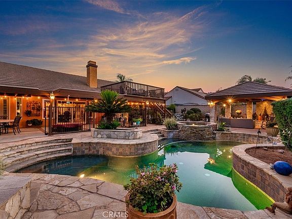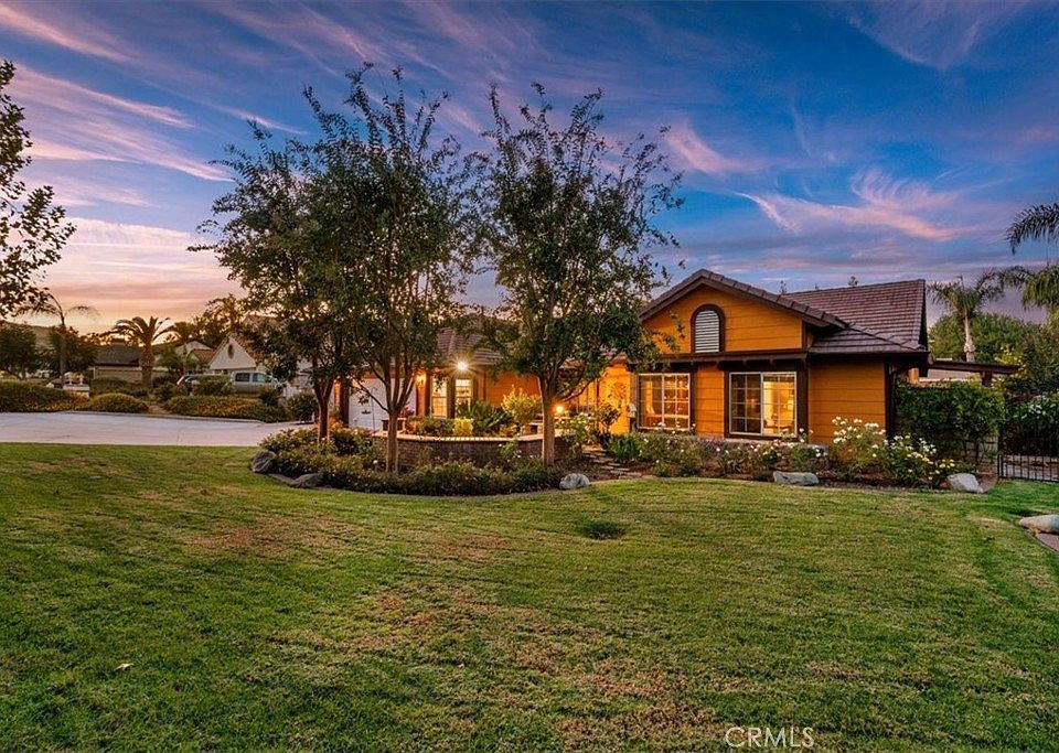 Wake up every day in a stunning single-level residence in the desirable El Sobrante area of Riverside, next to La Sierra South. This extraordinary half-acre retreat zoned Residential Agricultural, is a paradise for nature lovers and garden enthusiasts. Step outside to a breathtaking landscape, featuring a serene koi pond, enchanting rock gardens, and winding paths that invite exploration. Surround yourself with vibrant annuals, luscious fruit trees, majestic Queen Palms, and towering Coastal Redwoods, all harmoniously blended with tasteful hardscape.