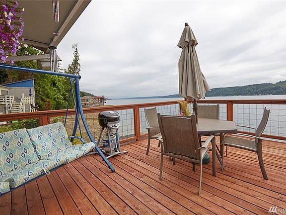 PARADISE FOUND w/ this 2 bdrm + bonus rm/1 bath home w/80 ft of prime, low bank, bulk headed waterfront w/tidelands! Enjoy abundant oysters & clams & all that the beautiful Hood Canal has to offer. Move in ready home features new interior/ exterior paint, new drain field, newer 30 yr roof & boasts an 800 sq ft entertainment deck! Cozy wood burning stove heats entire home. Nicely landscaped yard w/ garden area & storage shed. Lot extends upland across road & has a carport for parking convenience.