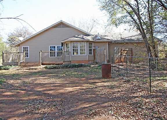 Edmond Schools, wooded acreage, wood floors in living & dining area. Secluded quiet area, with lots to offer. Large utility room with storage. New carpet in bedrooms. Tile in kitchen and utiltiy room. Fenced for livestock also.