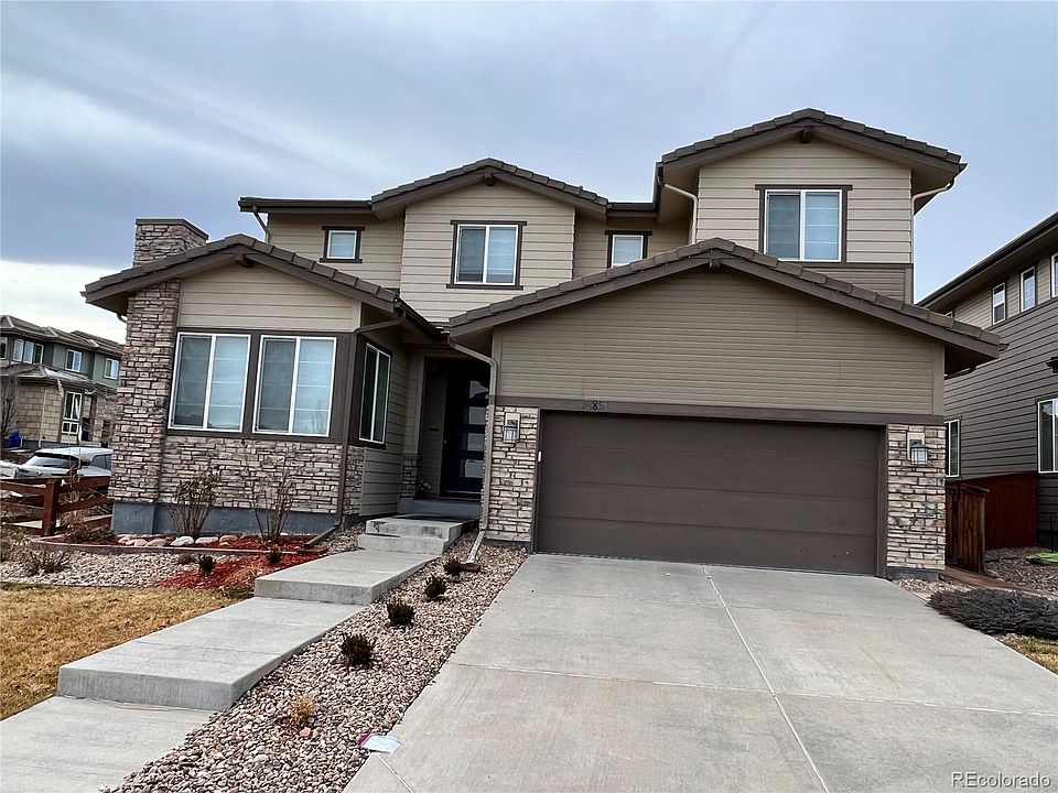 This East facing and large corner lot home is the one you have been waiting for! Beautiful 4-bedroom, 2.5 bathroom with an office and large loft in Parker's prestigious and coveted Steppingstone! One of the best neighborhoods in the Denver Metro Area. The main floor has a bedroom/office and a half bathroom with space to put in a shower. Gorgeous, bright and open floor plan. Modern Gourmet kitchen with Gas cooktop and stainless-steel Vent/Hood with Granite countertops and shaker style cabinets. Stainless steel appliances. Large kitchen that flows into eating space and family room with upgraded contemporary Cosmos gas fireplace. Perfect for entertaining! Large upstairs master suite with an expansive walk-in closet. 3 additional bedrooms upstairs and a huge loft upstairs, upstairs laundry. Un-finished full basement is ready for your imagination and has tiled carpet installed. This house also has whole house humidifier and water softener. Very well maintained with no pets and never smoked in. Home has Large stamped concrete patio and large backyard is fully fenced-in with professional landscaping! Award winning community amenities including a beautiful clubhouse, pool, playgrounds, parks and trails. Walking distance to Rueter Hess Reservoir Incline and FOOD TRUCK FRIDAYS!! Located moments from I-25 and E-470 making daily commute a breeze. Minutes to Denver Tech Center, Inverness, Meridian and Park Meadows Mall. Douglas county schools. 3 Light rail stops are 2 miles away (Sky Ridge, Lone Tree Town center and Lincoln). Easy access to grocery stores, restaurants, malls, gyms and Parker Main Street. You are sure to fall in love with this one.