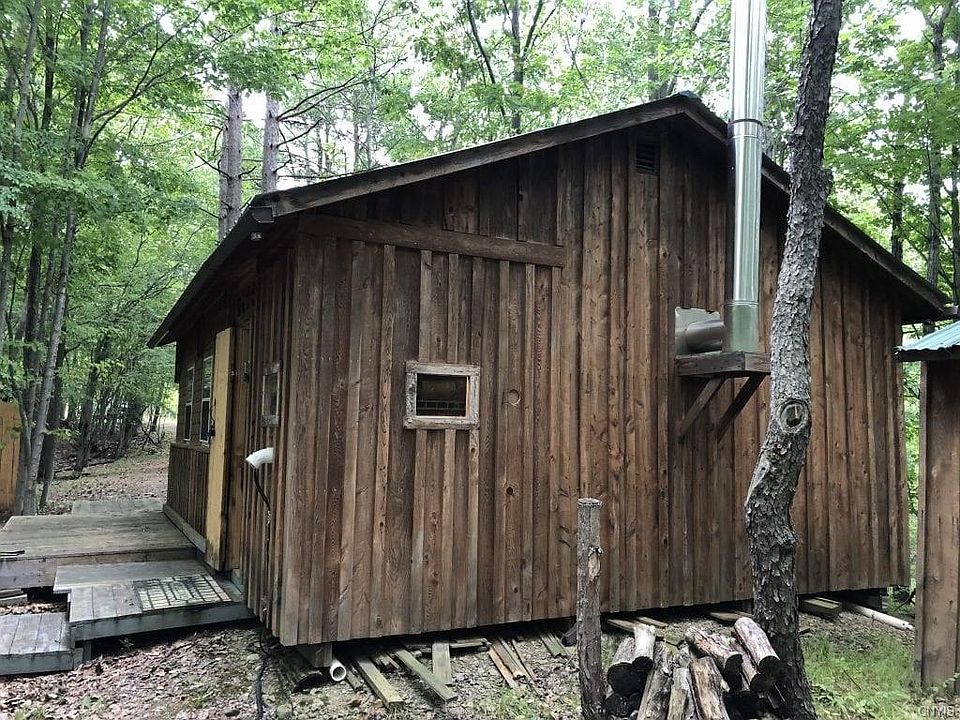 Cabin in the Woods! Exceptional recreation and vacation property. The cabin is 20 x 24 completely insulated, including floor. There are additional 5 outbuildings and a compost toilet. The building closest to the cabin would make a perfect bunk house. There is a 200+ ft. drilled well and electric on the road. There are 10 acres of mature forest. The woods consist of Oak, Hickory and Hemlock. The property is rolling with the camp setting on an oak ridge.
