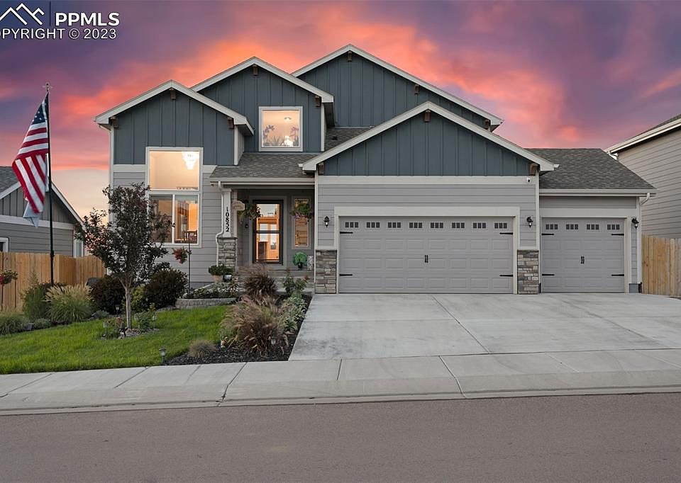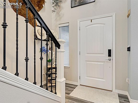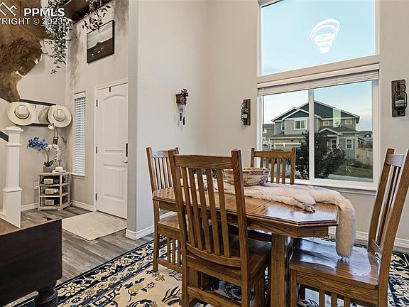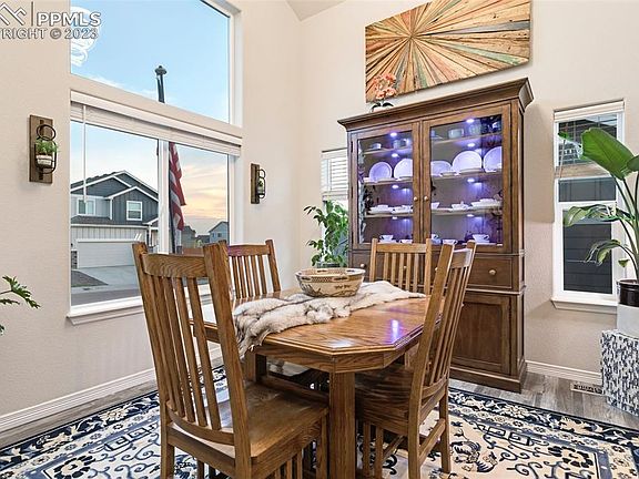 Welcome to this exquisite, upgraded residence, nestled in the breathtaking beauty of Colorado Springs. As you step through the entrance, prepare to be captivated by the grandeur of vaulted ceilings and a staircase adorned with luxurious vinyl plank flooring, setting the tone for the elegance that awaits within. To the left, a formal dining area beckons, creating an immediate sense of refinement. Beyond lies the entrance to the state-of-the-art kitchen. The kitchen boasts a suite of stainless-steel appliances with a convenient counter bar that invites casual interactions. The steel apron-front sink and soft-close cabinets are both functional and stylish, while the Italian porcelain countertops elevate the space to sheer opulence. The open layout effortlessly connects the kitchen to the living area, for seamless entertainment. Sunlight filters through as you step onto the deck, offering panoramic sunset views. As you journey down the hall, the master bedroom presents itself as a serene sanctuary. A lavish en-suite 5-piece bathroom awaits, adorned with double vessel sinks that epitomize luxury. The same Italian porcelain that graces the kitchen adds a harmonious touch of continuity. The expansive walk-in closet ensures ample storage while maintaining an air of sophistication. Completing the main level is a well-appointed laundry space with a walkout to a 3-car oversized garage. A half bathroom on this level caters to both residents and guests with ease. Ascend the stairs to discover a cozy loft, perfect for a home office or a quiet reading nook. Two bedrooms connected by a Jack-and-Jill bathroom await, featuring an upgraded shower. Venturing downstairs to the walkout basement, you'll find a space brimming with potential. Insulated and plumbed for a fourth bathroom, this area is a canvas ready for your personal touch. Contently located close to to Fort Carson, Peterson SFB, and Schriever. Experience a true one-of-a-kind gem by scheduling a showing today!