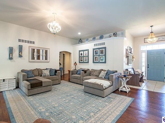 STUNNING HOME! This master piece has so many things to love that I can't list them all. A few highlights will be the 5 bedrooms on the main floor, the double room gas fireplace, the sunroom, the formal dinning and breakfast nook, the in home gym, concrete storm shelter, finished walkout basement, basketball court and 3 car garage. 3 more rooms that would be great for bedrooms in the basement.