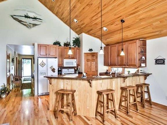 Here's a well-maintained custom-built Cornerstone home on Annabelle Lake! This beautiful open concept home has 3 bedrooms, 2 bathrooms and is fully handicap accessible. Private setting with 2.54 acres of land and 220' of sand and gravel frontage. From the Great Room a wall of windows allows stunning sunset views! Gorgeous custom kitchen with Cambria quartz countertops. Spacious dining area and living room. The field stone gas fireplace will warm the entire space. The storage throughout the home puts everything in easy reach, from the carpenter-built pantry in the kitchen to the walk-in closet in the master bedroom. Handsome hardwood floors, cathedral wood ceilings, in-floor heat in the master bath, central air, whole-house water filter and hard-wired generator/surge protector. Now add the beauty of half log siding, metal roof, 3-stall insulated garage, well landscaped grounds, black-topped circular driveway and you have the very best of lakeside living. A must see. PRICED TO SELL!