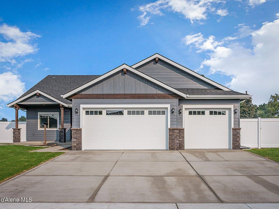 This home is an exquisite, one story, 1,903 square foot home featuring a primary suite, two guest bedrooms, and a guest bathroom. The large kitchen flows into the vaulted ceiling great room making entertaining an enjoyable experience. The primary suite boasts a walk-in closet, walk-in tile shower, and dual sink vanity. Large garage with RV bay to store all your toys! Take in the neighborhood from your covered front porch or enjoy your privacy from your covered back patio. Quality standard features include: cement lap siding, granite/quartz throughout, central A/C, full fencing and more! Enjoy this quiet neighborhood with no through street in desirable Hayden, ID.