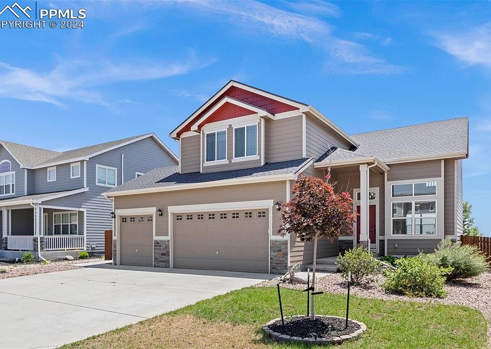 Welcome home to this 4 bed, 4 bath, 3 car garage home in beautiful Paint Brush Hills! Upon entry, step into the vast living room featuring vaulted ceilings and an abundance of windows allowing for natural light to pour throughout. This open concept floor-plan then leads you to the ideally situated dining area, adjacent to the kitchen, both boasting gleaming hardwood flooring. The spacious kitchen features granite counter-tops and an island with a breakfast bar, perfect for a quick snack or an informal meal. The dining area has a convenient walk-out to the newly stained wood-deck, where you'll be sure to soak up the views of the gorgeous Colorado sun slipping behind America's mountain. On the upper level, you'll find the loft over-looking the living room; this space has endless possibilities! The primary features a walk-in closet and an adjoining 5-piece bathroom. Another full bath can be found in proximity to two additional upper-level bedrooms. Retreating downstairs to the basement area is the family room, perfect for entertaining or reclusing into peace and quiet after a long day. The additional bedroom in the basement is perfect for guests or that someone who prefers more space, as there is a 3/4 bathroom located down here as well! Massive 3-car garage provides ample room for vehicles and storage space, and even better, the pet-friendly doggy door providing side-yard access. Both front and backyards have been landscaped. Auto-sprinkler; solar-panels; new blinds; new water heater; radon mitigation already installed.
