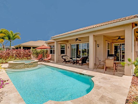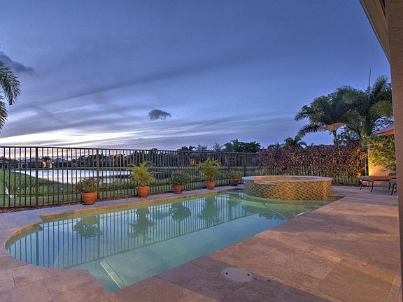 This stunning pool home features long lake views and beautiful sunsets. **It comes with a one year home warranty** Enjoy the wrap around covered patio for entertaining and barbecues. Soak away your cares in the salt water pool and hot tub while enjoying the lake view. The kitchen features a new Stainless French door refrigerator and range with double oven and warming drawer. The home is next to an easement for extra privacy. Come see this beautifully landscaped well-maintained home. Save thousands over new construction and enjoy the best and quietest newer Valencia Communities. This home is located away from Boynton Beach Blvd and 441 for complete quiet.