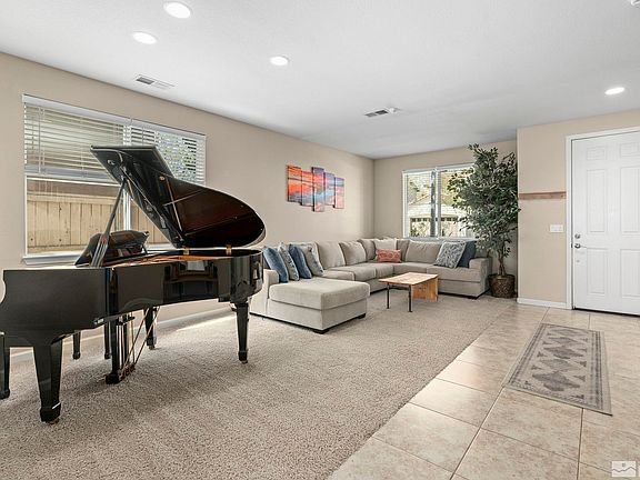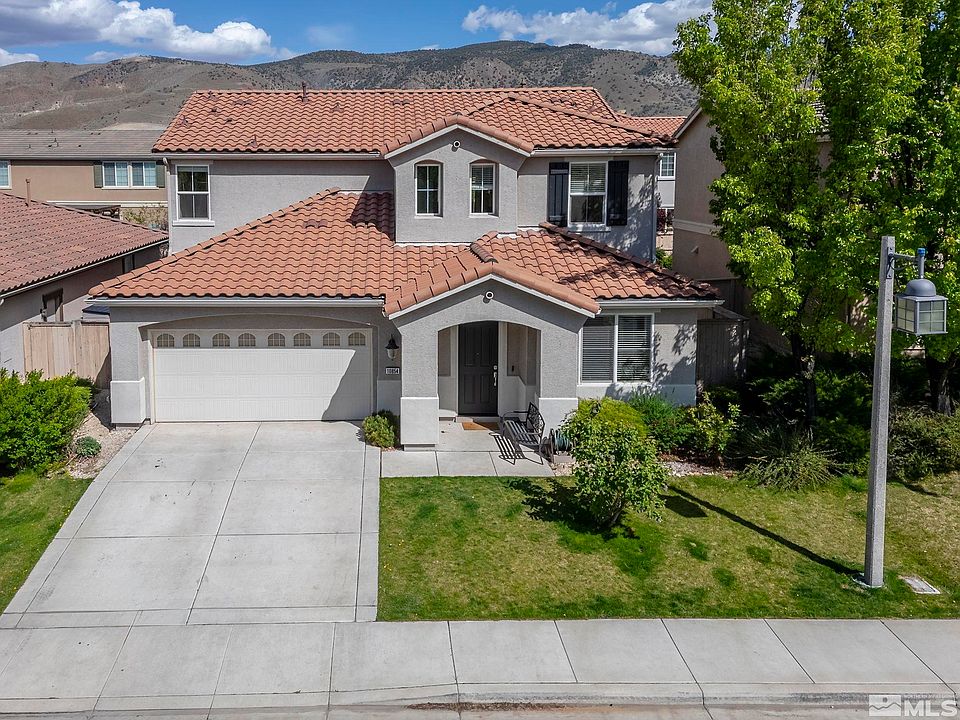 Welcome to your dream home nestled in the serene Casa Bella community of South Reno! This stunning two-story residence offers four bedrooms, two and a half bathrooms, and an array of meticulously designed living spaces for both formal gatherings and relaxed family time. Step inside to discover the perfect blend of elegance and comfort. The inviting layout flows seamlessly from room to room, offering an abundance of natural light and a sense of warmth throughout., From the spacious living room to the cozy family room, every corner of this home exudes charm and sophistication. The heart of the home lies in its well-appointed kitchen, complete with modern appliances, ample storage space, and a convenient breakfast bar for casual dining. Adjacent to the kitchen, the dining area sets the stage for memorable meals with loved ones, overlooking the beautifully landscaped backyard oasis. Upstairs, retreat to the private quarters featuring four generously sized bedrooms, including a luxurious primary suite with a spa-like ensuite bathroom. With the laundry room conveniently located upstairs, chores become a breeze, adding to the overall convenience of everyday living. Outside, enjoy the tranquility of the fully landscaped front and backyards, perfect for outdoor entertaining or simply soaking up the sunshine on lazy afternoons. The tandem garage, a haven for any hobbyist or handy person, features epoxy floors, upgraded light fixtures, and ceiling rack garage storage, providing ample space for projects and storage needs. Situated in a highly sought-after neighborhood, this home offers the ideal combination of comfort, convenience, and community. Take leisurely strolls around the picturesque surroundings, or explore the nearby dining and shopping options just moments away. Don't miss the opportunity to make this exquisite residence your own. Schedule a showing today and experience the epitome of modern living in the heart of South Reno!