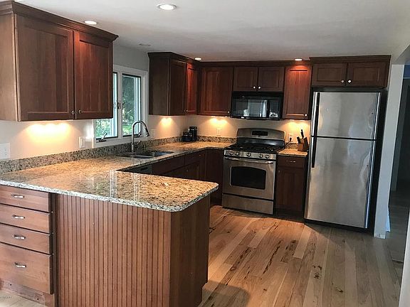 Welcome to Pine Lake, a 660 Acre All-Sports lake. This cute bungalow home so many updates. Beautiful hickory floors through out the home, cherry kitchen with granite counter-tops, stainless appliances, large eat in area with a slider to the deck. Great room with fireplace, an open staircase and a wall of windows to enjoy the beautiful view of Pine Lake. Master main floor bedroom with walk in closet & updated bath. Upstairs offers 2 more bedrooms with plenty of closet & storage space and 2nd large bath with ceramic flooring. Basement has plenty of storage & large windows for natural lighting. Newer furnace & roof. Nice private fenced backyard with a 12x12 storage shed. Home needs some minor finishing (trim) You will love sitting in the screened in porch watching the boats go by. Home was