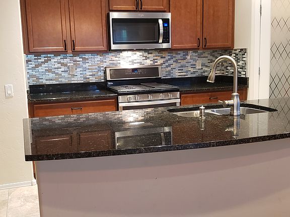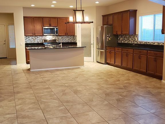 Located on a quite cul-de-sac this great room floor plan with 4 bedrooms and 2 baths has an oversized island with slab granite countertops, extended kitchen with ample counter and cabinet space. The kitchen has a custom backsplash and stainless steel appliances. Property includes a refrigerator, washer and dryer. 16x16 tile in the high traffic areas. Bedrooms and game room/office are carpeted. The interior has been freshly painted. Gorgeous, private, professionally landscaped backyard with extended covered patio looking out on open green space. Located in the award winning Vail school district. Will be available for rent on November 15, 2025