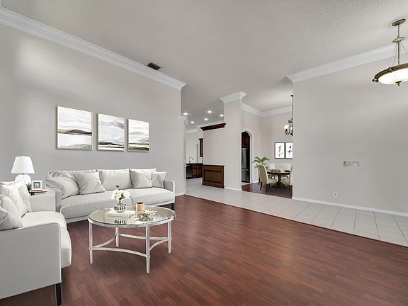 You will fall in love the moment you walk into this elegant home which features a formal living and dining room, family room and screen enclosed patio. There are upgraded cabinets, granite countertops, full granite backsplash, a custom pantry, high hat lighting stainless steel appliances and a snack bar in this dream kitchen. The luxurious master suite has a double door entrance, his and her closets, a slider to the patio, dual sinks, soaking tub and a walk-in shower. Enjoy the Florida lifestyle on the screen enclosed patio with a retractable awning, a salt-water pool with a waterfall and a stunning lake view. This stunning home is situated on a cul-de-sac and features neutral flooring, crown molding, a custom double front door, central vac, smooth walls and an intercom.