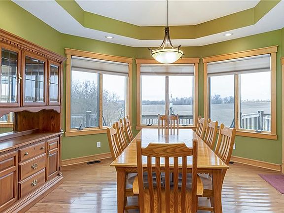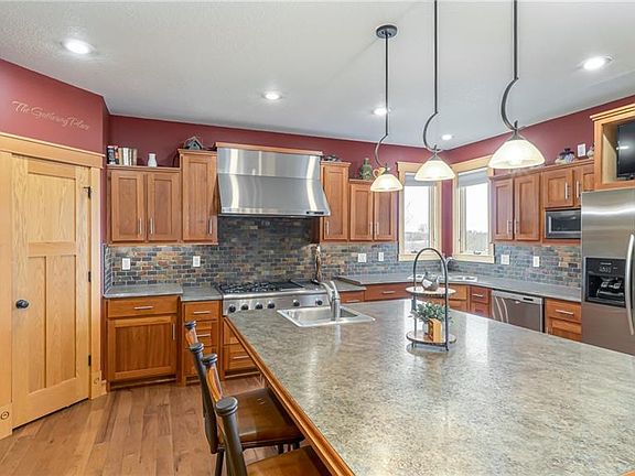 What a STUNNER! Custom built acreage boasting 2430 sqft on the main, 2254 sqft finished in the walkout basement & just under 3 acres. The floor plan flows beautifully, move onto a gourmet kitchen w/ professional Thermador gas cooktop--double Bosch ovens--huge island--custom cherry/oak/alder wood cabinets/built ins & lockers--dining area seats 8+--hickory floors--hearth room w/2 sided fireplace--Anderson windows--geothermal system--tray & vaulted ceilings. Sizeable bdrms have walk-in closets. Dwnstrs is a massive family/rec area w/built in entertainment center, wet bar, craft room, 2 bdrms & 3/4 bath, + storage. Outdoors-a 2 level deck w/20,000 gallon pool w/cabana & 70x30 building w/ loft (30x40 shop is heated, w/water, drywall & epoxied floor). Perfect for a hobbyist. 400 amp service (house 200-shop 100-100 avail). Gorgeous landscaped yard w/ perennials, trees, shrubs, a swing & fire pit overlooking rolling farmland in the distance.