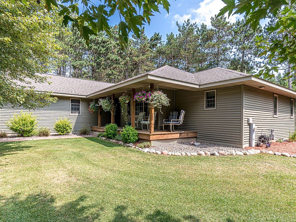 Welcome to Arbor Vitae and this beautifully maintained 3-bed, 3-bath home offering 2,500 finished sqft of warm, inviting living space. Main floor living features split bedrooms, open concept living, dining and kitchen, laundry room and primary ensuite. Set on a stunning 1.89-acre landscaped lot that borders peaceful state land, providing privacy and abundant wildlife viewing. The finished basement is perfect for everyday living and entertaining, featuring a cozy pellet stove, large family room, storage, and a versatile bonus room. Step outside to a private oasis with a blacktop driveway, 2-car attached garage with carport, spacious sun deck, shed and a fire pit, ideal for relaxing evenings under the stars. Enjoy the comfort and efficiency of natural gas, central air, high-speed internet, and cable TV. In pristine, move-in-ready condition, this home is tucked away in one of the area’s most desirable subdivisions, offering peace and modern convenience all in one perfect package.