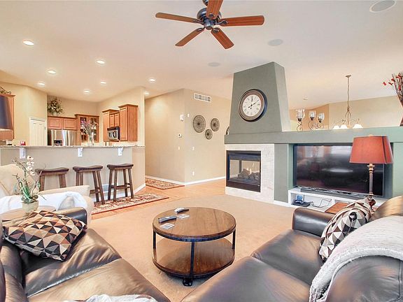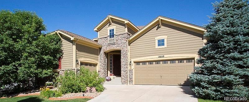 Welcome to this stunning ranch style home in Reunion! Upon entering, you'll be greeted with gleaming hardwood floors, an open floor plan and 10 foot ceilings! You will love all of the large windows with plantation shutters throughout the entire home. The private office is separated with french doors and opens into the foyer. The dining room and spacious family room share a 2 way fireplace, perfect for those chilly Colorado evenings. The kitchen features granite counter tops, stainless steel appliances, plenty of pantry space, beautiful cabinetry, bar-style seating and kitchen nook. Down the hall is the large master bedroom, complete with walk-in closet and 5 piece bath. There are 2 more bedrooms, one with beautiful built in floor to ceiling shelving. The basement is unfinished and ready for your creativity! Step outside and enjoy the covered, stamped concrete patio with family and friends. This home is perfect for entertaining! Comm Pool; 1 block from park/playgrd; You'll love it all!