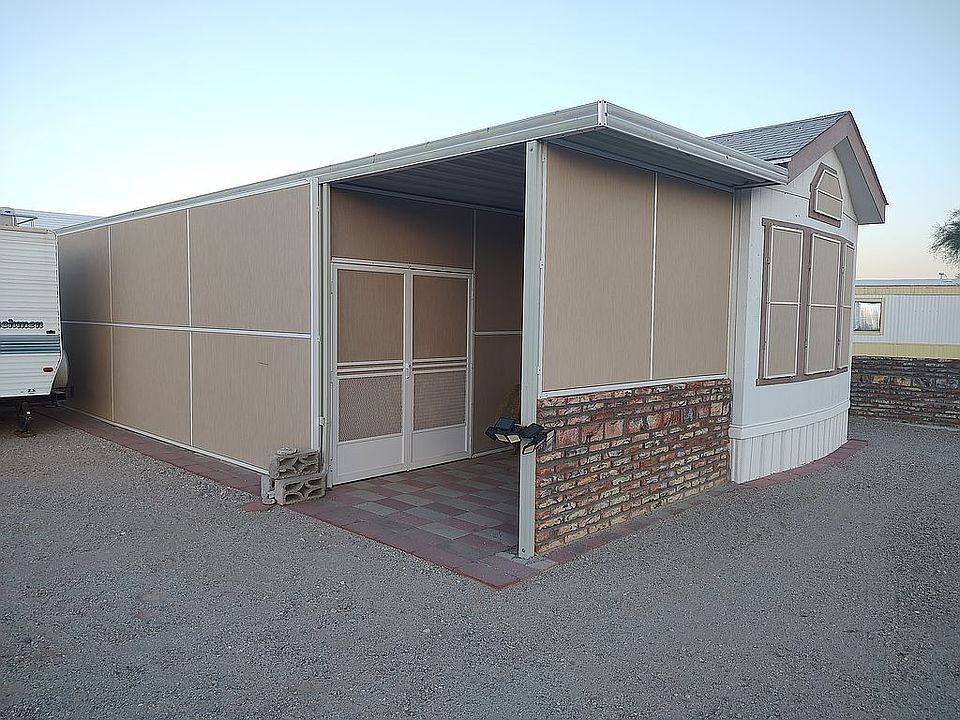 Endless Fortuna Foothills Mountain views from this one bedroom one bath home! Double access gates on this .66 acre Wash Property. No HOA! Carport (26x20) keeps toys and vehicles out of the elements! Sunshades on the vaulted ceiling home with ceiling fans keep things cooler in the summer. A large screen room patio provides additional private living space. Insulated air conditioned shed with sink just off carport and a second shed on property houses houses washer. Two full RV spots on property also (not separately metered). Owner financing may be considered.