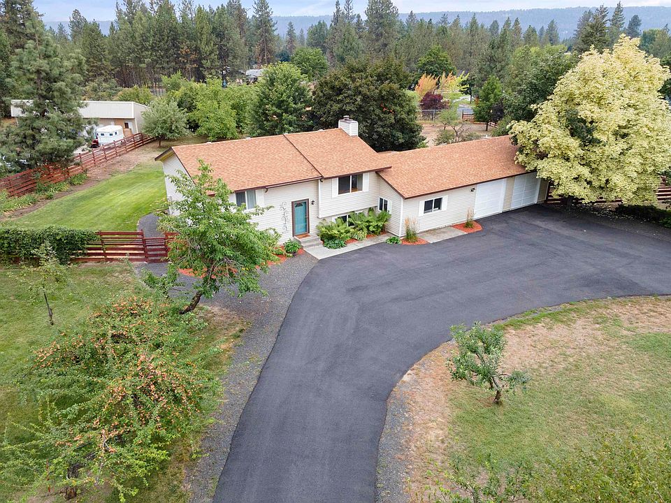 Relax and Enjoy this well-cared-for Nine Mile 3-level home with many recent updates and situated on a large 1+ acre lot! This home is much larger than you’d think. Complete with 4 bedrooms and 3 bathrooms, multiple living spaces, a large sunroom, and a fantastic open kitchen with a giant island opening to the multi-tiered Douglas Fir back deck, this home is perfect for entertaining. Relax while overlooking the large, fenced backyard, birds, fruit, and nut orchard, and the enclosed garden. All of this plus a shop! Just moments from services, grocery, coffee, hardware, restaurants and more. The orchard includes 7 apple, 13 plum, 1 prune, 6 pear, 5 walnut, 2 hazelnut, 2 hawthorn, and a grapevine! Better come see it before it’s gone!