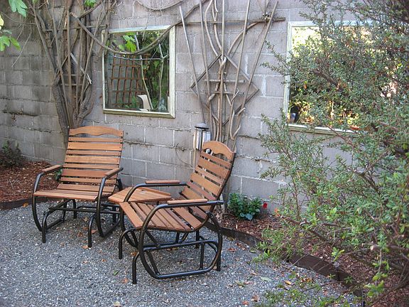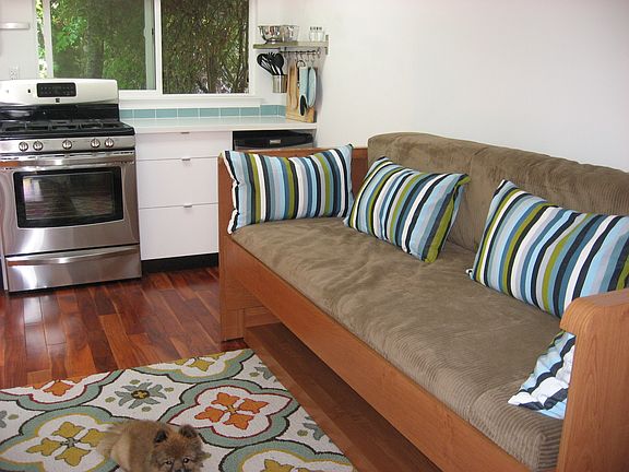 Open 10-12 on Saturday, August 16. This hidden garden cottage with gourmet kitchen and hardwood floors is available for rent. It is set in our landscaped garden space with private entrance and no shared walls. The cottage is behind a house on a quiet North Oakland street. This is a sweet little place which is perfect for one person but is just too small for a couple. Sorry, no exceptions. Small dog or cat negotiable. Includes free use of washer and dryer. From our last tenant: I rented this studio for about a year, but I would have stayed much longer if I could. It's on the smaller side, so all the details are thoughtful and practical. I appreciated the full kitchen, generous window space, and lovely garden area complete with fruit trees! Also, Aisha & co. have been super flexible and communicative. I didn't experience any major issues at this rental, but I never had to wait more than a few minutes for a response to an inquiry or minor concern. I would highly recommend renting this cute little cottage from them! From a current tenant: My partner and I live in the house at 1085 61st st, and we love it there. The space feels fantastic and the backyard is stunning (I can't get over the plum tree). Aisha has been an ideal landlord. She has been communicative and responsive without ever feeling invasive. We love living here! Furnishings include chair, kitchen pots, pans dishes, air purifier, table/laundry basket and utensils. All that is needed is you and your bed! There is a double bed there currently if you would like but can be removed. $1,300/month includes: water, and garbage Tenant responsible for PG&E and internet Free shared washer/dryer A twice monthly gardener Unit includes: Kitchen - stainless steel appliances, dishwasher, convection stove Ceasarstone countertop Hardwood floors Bathroom with shower stall Dual-pane windows and insulation Skylight Gas heater Front loading washer drier (shared) Utilities include: water, garbage Covered area for bicycle storage Small but efficiently spaced out at 16.5'x12.5' Easy street parking Close to the 72 and F buslines, 20 minute walk to bart, 5 minutes to the freeway for SF and more. One mile from Berkeley Bowl. Several cafes and restaurants in the neighborhood. Owner is responsible for water/sewer and trash. Tenant is responsible for PG&E and internet. Lease is for one year and then it is month to month. No smoking or candles. Parking is on street. Bicycle parking on site. Gardener is there twice a month and included in the rent.