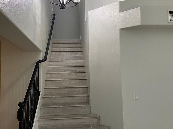 This newly renovated home has 5 bedrooms and 3 bathrooms. There is a bedroom and full bathroom on the first floor. The floors have been upgraded to beautiful gray luxury vinyl planks which are easily maintained. The master bedroom boasts a custom closet system and a private ensuite fully equipped with an oversized tub, sauna, his and hers sinks, and a large custom shower with rain shower head, 6 body jets, and hand held shower wand. Both secondary bathrooms have been upgraded with all black faucets and gray quartz countertops that are consistent with the kitchen. There are shutters throughout the home and solar window screens on every window to assist with keeping the house cool. There is a playground set perfect for the little ones and child safety fencing has been installed around the pool and hot tub. There is also an area on the side of the home for your furry friend. There is a water softener system installed in the home as well as alkaline filtered drinking water. This home is definitely one you do not want to miss out on! It is close to the freeway and only 15 minutes from the Las Vegas Strip! More photos to be posted this weekend. Home can be toured now. Renter to pay electricity, sewer, trash, water, and gas. There is a security deposit required of $5,000. There will also be a pet deposit of $500 per pet.