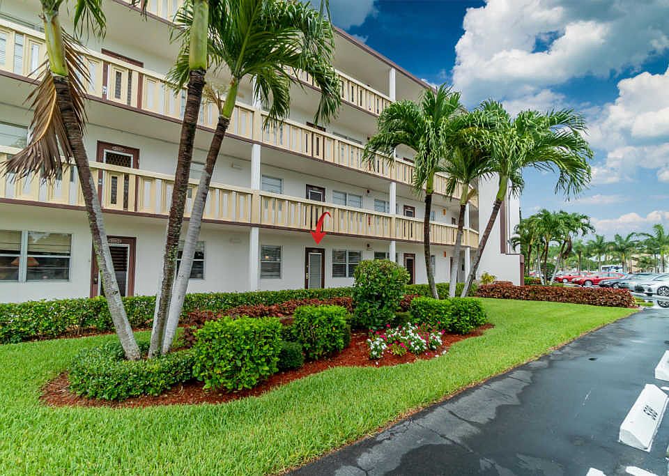 Spacious, ground-level, lake view condo with 2-BR, 1.5 BA, located in Century Village, a highly desirable 5-star 55+ adult community in Boca Raton. Ready for your personal touches. This could be a great unit once its updated. Upgrades will add instant equity. Newly renovated apartments are selling above $170,000.The building is impeccably clean, safe, and well maintained. Convenient assigned parking. Guildford pool in center of cul-de-sac, just a quick walk from your apartment. The unit features an open floor plan with a charming galley kitchen with newer stainless-steel appliances purchased in 2018. Open dining and living room area feels fit to live in. All tiled floors throughout. Unit comes equipped with 4 high quality ceiling fans w/light ket & remote. Well-designed master bedroom