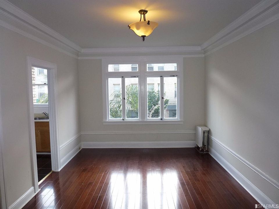 Great studio apartment just was redone. Newer gas range, big refrigerator and black natural stone tiled floor in the kitchen. Bath with original clawfoot tub, Edwardian medicine cabinet, and subway tiled floor. Dark new hardwood floors throughout. Walk in closet and 2nd walk-in coat closet. The unit looks onto Polk Street and may not be suitable for noise sensitive apartment seekers. 1086 Post Street is steps from all the Polk Street action, booming nightlife and great restaurants, central location makes it easy to get around town on public transportation. Assigned 24-hour access garage space available for $250 extra per month. Electric, gas, steam heat, water, hot water & garbage included. Very nice on-site laundry.