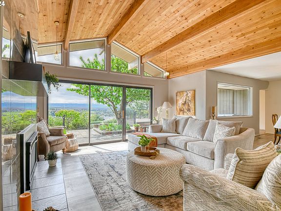 Simply amazing on Skyline! So much to love about this well cared for home. From the stunning views to the mature landscaping this is a one of a kind property. When relaxing in the living room you view the mountains and the valley through floor to ceiling glass! The vaulted ceiling enhances the experience. The gas fireplace adds ambiance and warmth to this charming home. When you tire of being inside venture out to almost 1,200 sq feet of patio and deck space. Inside you will find 3 bedrooms on the main floor, including the primary bedroom. The Kitchen is updated with stone countertops and plenty of cupboard and work space, not to mention the pantry. Laundry is on the main floor. Downstairs boasts another bedroom or an office with another bathroom. Outside we find mature fruit trees, spacious lawn area and its all watered with underground sprinklers. The back yard is fully fenced and its surprisingly private for a property in town. Schedule your showing today!