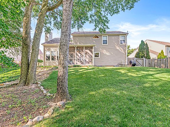 This lovely 4-bedroom home is situated on a .44-acre wooded scenic lot, perfect for nature lovers. Enjoy your mornings with a cup of coffee on the screened-in porch, overlooking the lush landscape. This immaculate 4-bedroom, 2 full & 2 half bathroom home features laminate flooring throughout its 3,800 square feet of beautifully maintained space. The primary bedroom boasts vaulted ceilings, decorative niches, and an updated bath. The open, spacious kitchen comes with all appliances included. The family room features a cathedral ceiling, complemented by a living room, dining room, loft, and a three-car attached garage. The full basement includes a half bath and a finished rec room. Bali Cellular Room darkening shades are included. The scenic backyard is fenced, w/natural gas grill, 20x10 patio. The exterior of the house was painted in 2020.