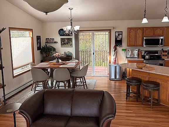 This home has everything you would need with 4 bedrooms, 2.5 baths, and bonus room in 2,096 square feet. Open concept with vaulted ceilings and mountain views. Close to hiking trails and University of Alaska. Located in a quiet cul-de-sac with great neighbors. The large, 672 square-foot garage outfitted with laundry area cabinetry can easily fit two cars with room for work benches, storage, and more. Boat or small RV parking next to the house. Generous back deck with adjacent greenbelt. Covered wrap-around front deck. Hardi-plank siding and a 50-year roof. 5 STAR Energy Rated (2008). New boiler and hot water tank installed May 2021.