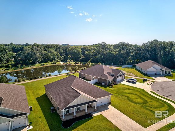 Welcome home to this desirable Victoria Floor Plan located in the popular Jubilee Farms in Daphne! Completed in 2022, this beautiful home sits on a premium lot that backs up to a serene community pond, with farmland beyond, offering a unique sense of isolation within a vibrant community. The home features a long foyer, covered front and back porches, a two-car garage, ample storage, and vinyl floors throughout (no carpet!). It also boasts a GOLD FORTIFIED ROOF for added peace of mind. As you enter through the front door, you are welcomed by the beautiful view through the expansive windows in the living area, offering a picturesque scene of the pond and farmland. The open floor plan is perfect for entertaining, with a gourmet kitchen equipped with stainless steel appliances, granite countertops, and a large island. The primary bedroom is incredibly spacious and includes a spa-like bathroom with dual vanities, granite countertops, a 6' separate shower, a garden tub, and a huge walk-in closet. This modern home also includes smart home features, allowing you to control lighting, temperature, and security systems remotely for added convenience and efficiency. Outside, the private backyard provides peaceful views of the pond and farmland from a covered patio. Jubilee Farms is a highly sought-after contemporary community with resort-style amenities unlike any other in town. Enjoy walking paths, a resort-style pool with a 20-foot-tall waterslide, a separate adult pool with a bathhouse, and stocked fishing ponds. The luxurious community clubhouse features an exercise center, yoga room, fully equipped catering kitchen for community events or private functions, and much more. This nearly new home offers the latest in design and efficiency, blending tranquility and community living perfectly.Buyer to verify all information during due diligence. Buyer to v Buyer to verify all information during due diligence.